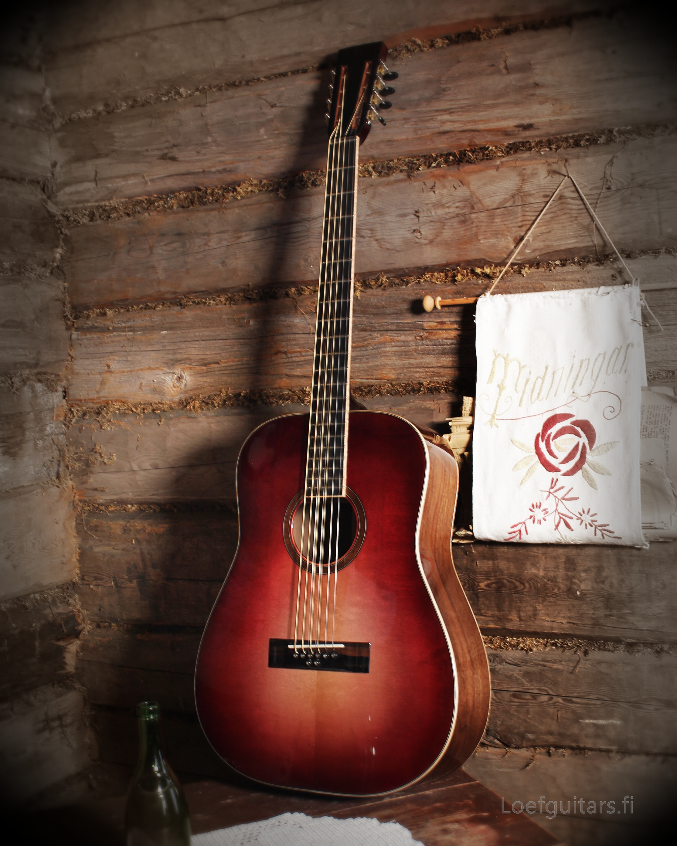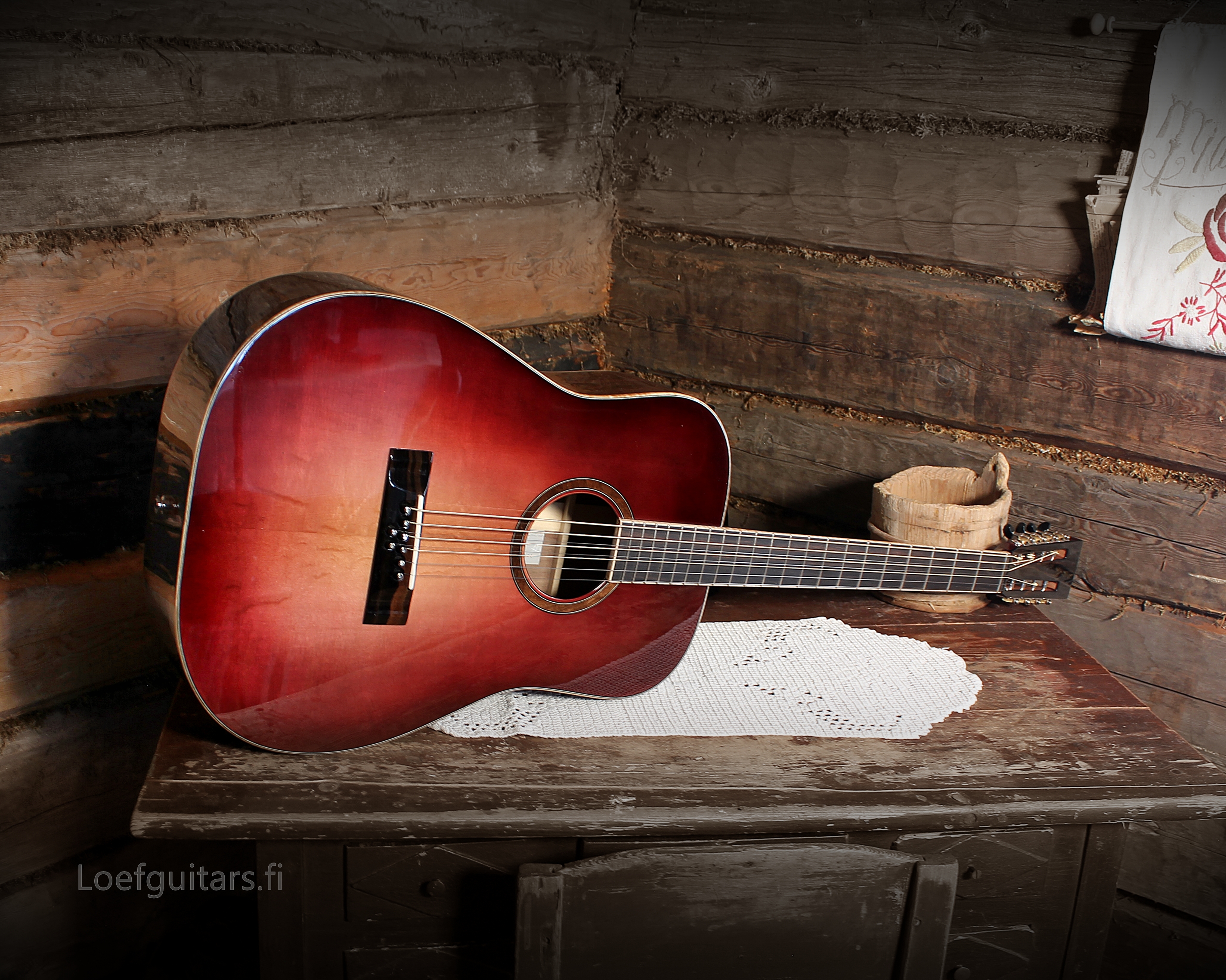 Aged Swiss Spruce Top with with a 3-tone Burgundy sunburst